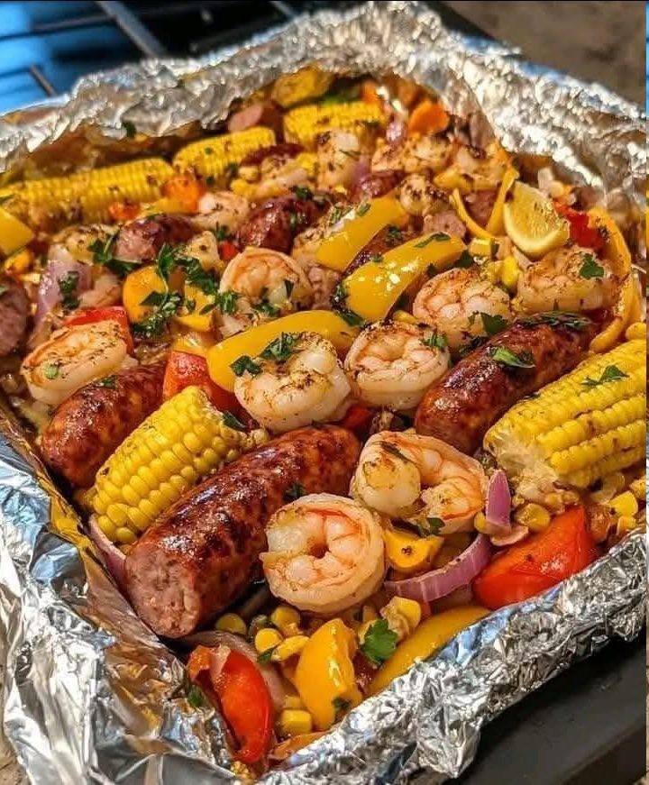 Cerchi un pasto veloce, saporito e senza sporcare? Questa cena in cartoccio con gamberi e salsiccia è perfetta per le serate infrasettimanali più impegnative o per le grigliate estive! Ricca di gamberi succosi, salsiccia affumicata, patate tenere e mais dolce, ogni boccone è un'esplosione di sapori Cajun decisi. Inoltre, con una pulizia minima, passerai meno tempo in cucina e più tempo a goderti il tuo pasto. Che tu la cucini al forno o alla griglia, questa ricetta facile è un successo garantito! 🍤🔥