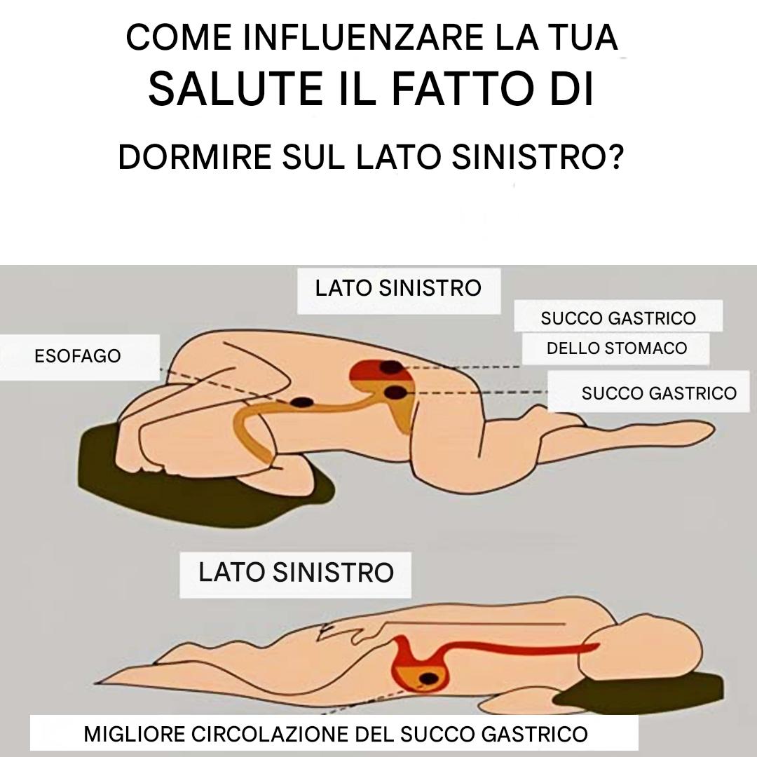 Un altro vantaggio: il colon segue un percorso da sinistra a destra. Dormire sul lato sinistro favorisce il naturale movimento delle feci verso l'intestino crasso, contribuendo a movimenti intestinali più regolari e a un risveglio più leggero.