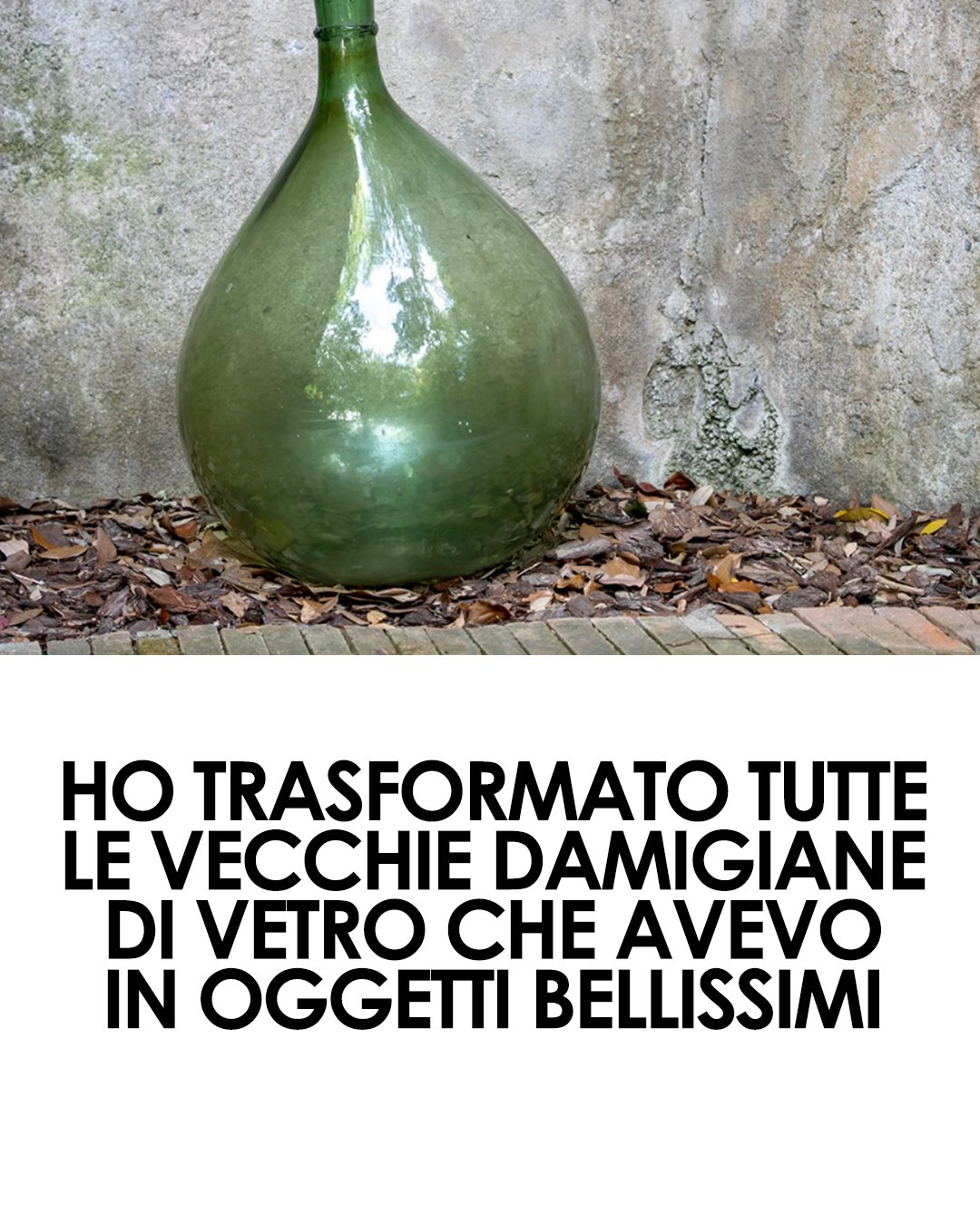 Potresti anche utilizzare una vecchia damigiana in vetro verde come arredo per il giardino, magari pensando di posizionarla o posizionarle per realizzare un divisorio tra i vari spazi creativi del tuo giardino.