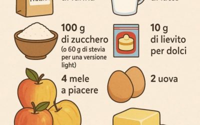 Ingredienti: 3 mele grandi (preferibilmente renette o golden) 200 g di farina 00 150 g di zucchero 2 uova 100…