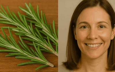 Questa immagine mostra il tè al rosmarino e i suoi potenziali benefici: una donna che lo beve e appare serena…